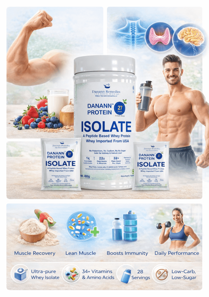 Modern-day hustle often leaves little room for balanced nutrition. Danann Protein Isolate fills that gap with a scientifically formulated blend of high-quality whey isolate, fortified with essential vitamins, minerals, and amino acids.