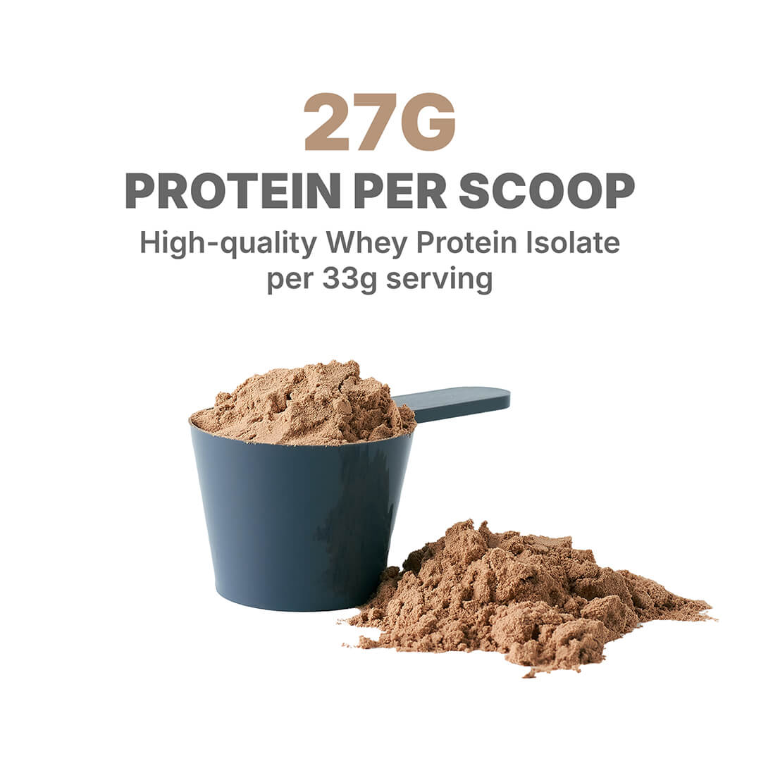 • Whey Protein Isolate (22 g per serving): Pure protein to repair muscles, recover from exercise, and feel full.