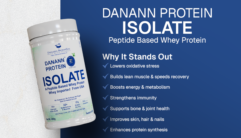 Modern-day hustle often leaves little room for balanced nutrition. Danann Protein Isolate fills that gap with a scientifically formulated blend of high-quality whey isolate, fortified with essential vitamins, minerals, and amino acids.